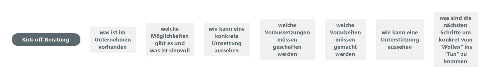 Gemeinsam haben wir in einem 1-Tages-Check die Ideen des Unternehmens, die Anforderungen des Marktes, die Möglichkeiten des Vorhandenen und neue Ideen in geordnete Bahnen gelenkt.